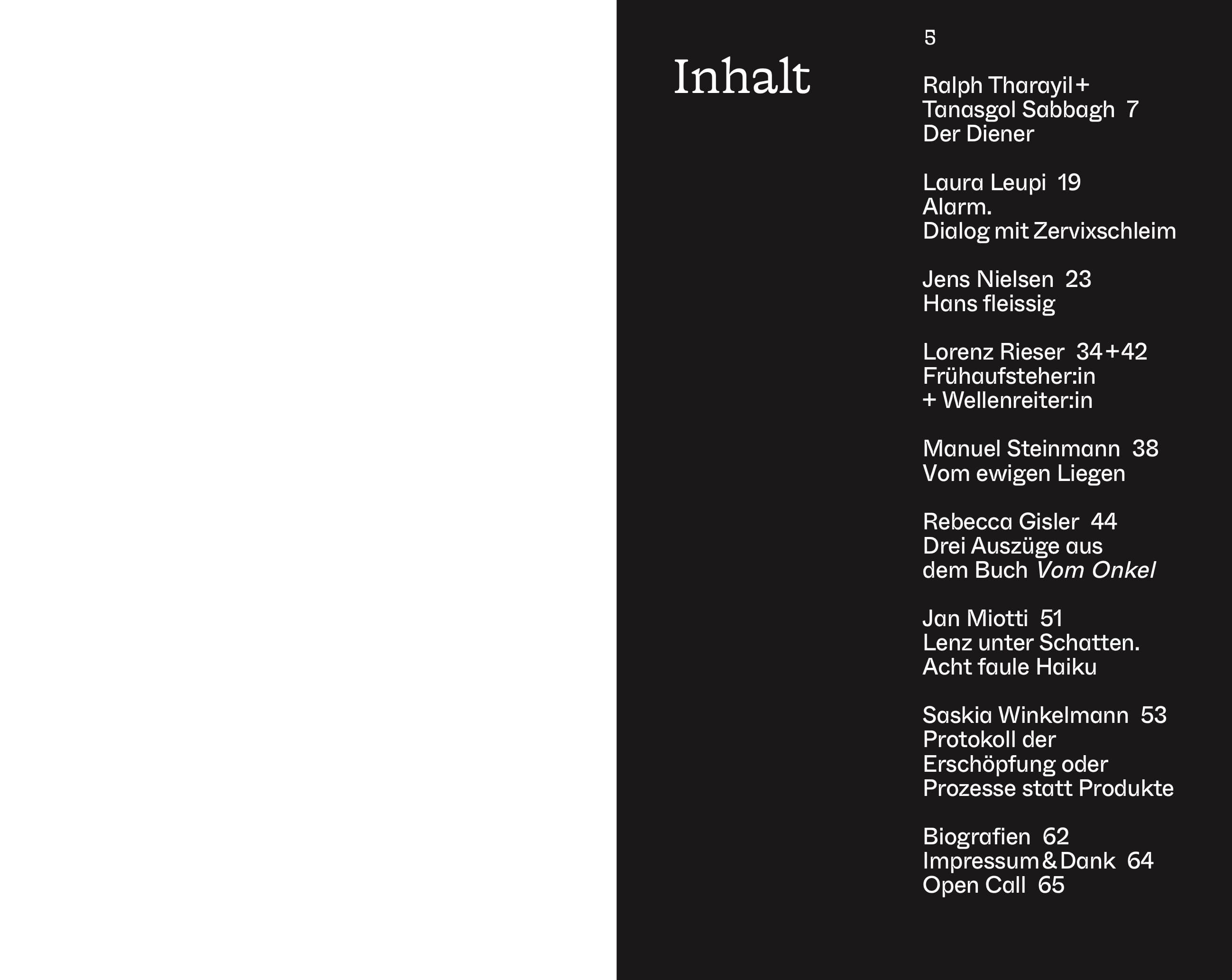 Ralph Tharayil + Tanasgol Sabbagh, Laura Leupi, Jens Nielsen, Lorenz Rieser, Manuel Steinmann, Rebecca Gisler, Jan Miotti, Saskia Winkelmann