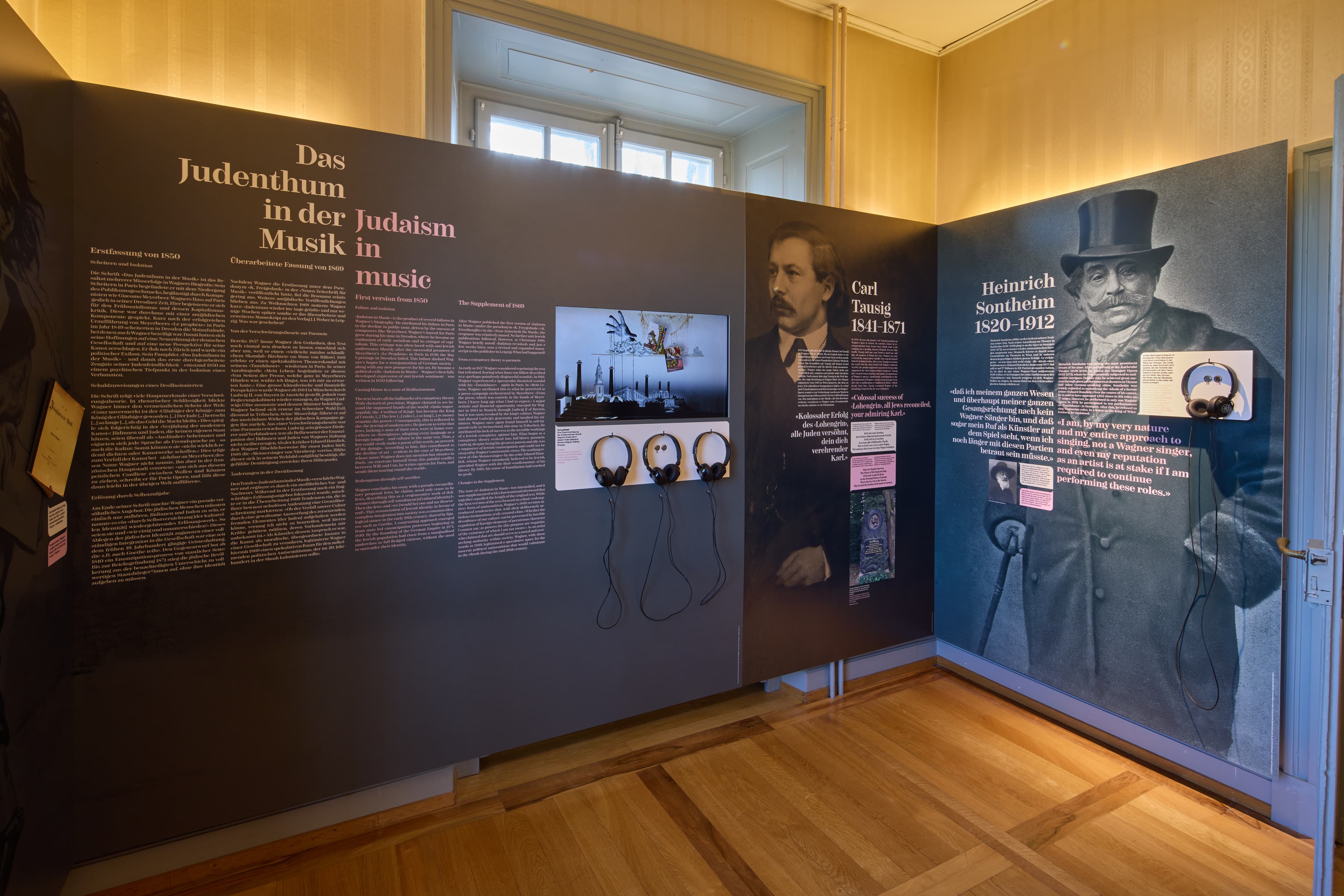 Unter dem Titel «Tabu Wagner? Jüdische Perspektiven» soll Wagners Antisemitismus im Fokus stehen und aus einem neuen Blickwinkel betrachtet werden. «Wie wirkte und wirkt Wagner auf Jüd:innen?», lautet die Leitfrage, die anhand der Aussagen von 29 Persönlichkeiten erörtert wird. Die mehrheitlich männlichen Komponist:innen, Opernsänger:innen und Schriftsteller, deren Auswahl vom 19. Jahrhundert bis in die Gegenwart reicht, werden auf grossen Text- und Bildtafeln zitiert oder kommen in Video-Interviews selbst zu Wort.
