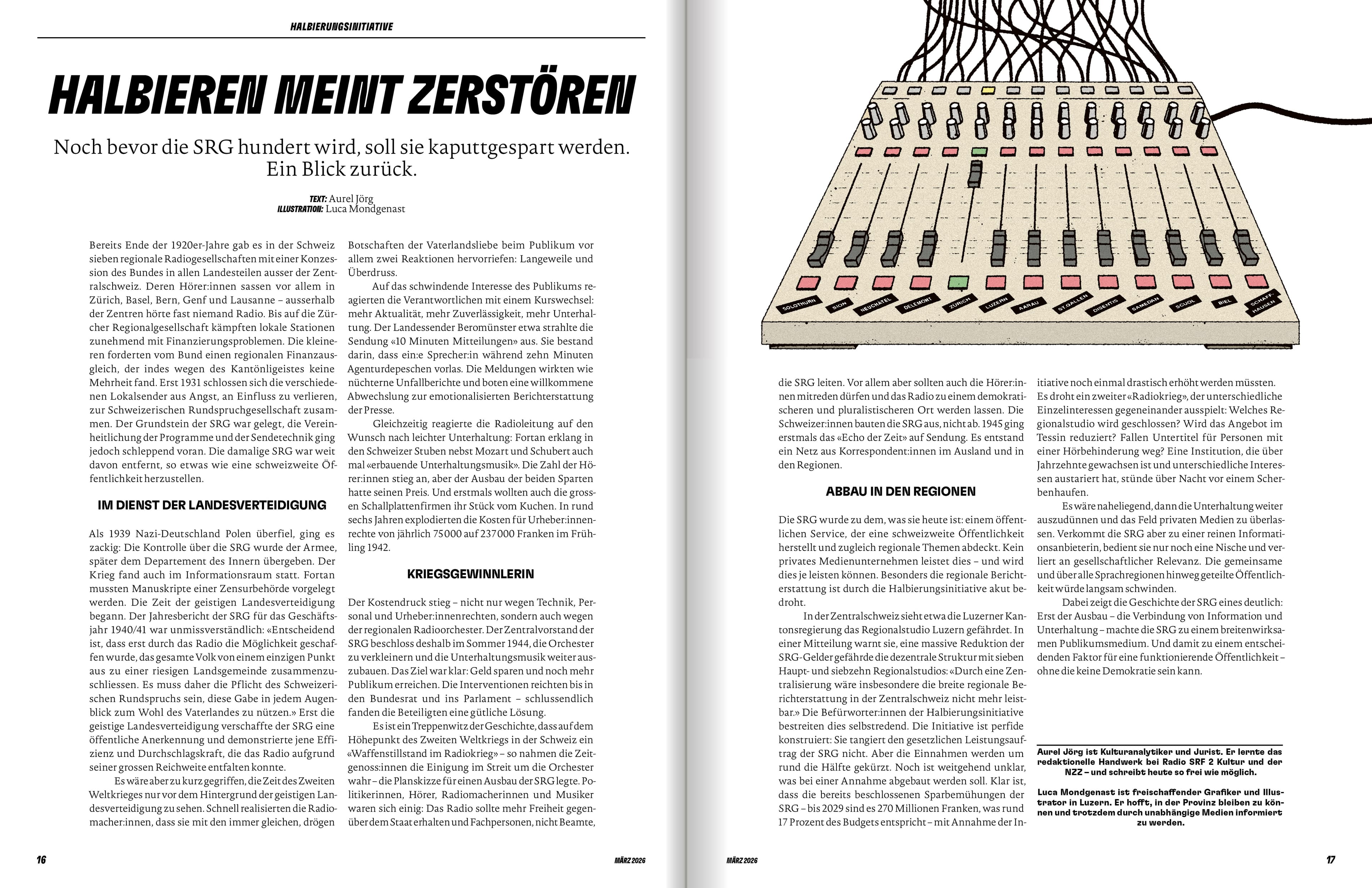 Als unabhängiges Magazin sind wir auf deine Unterstützung angewiesen. Dein Abo ermöglicht es uns, hochwertige Inhalte zu erstellen und unabhängigen Journalismus zu betreiben. Mit jedem Abo trägst du zur Meinungs- und Medienvielfalt in der Schweiz bei, unterstützt die Freiheit der Presse und sorgst dafür, dass lokale Künstler:innen und kulturelle Ereignisse die Anerkennung erhalten, die sie verdienen.